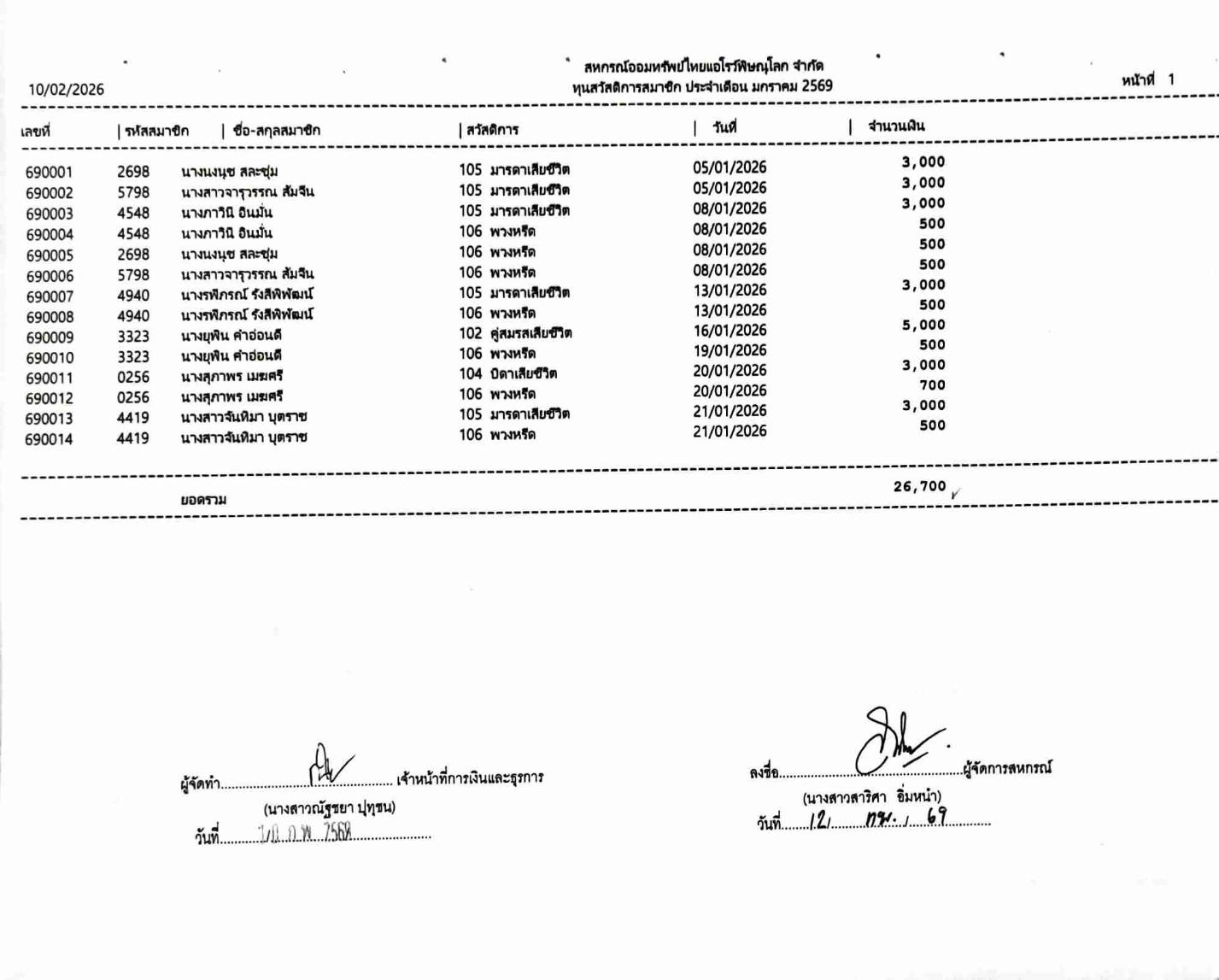 - ประจำเดือน มกราคม 2569